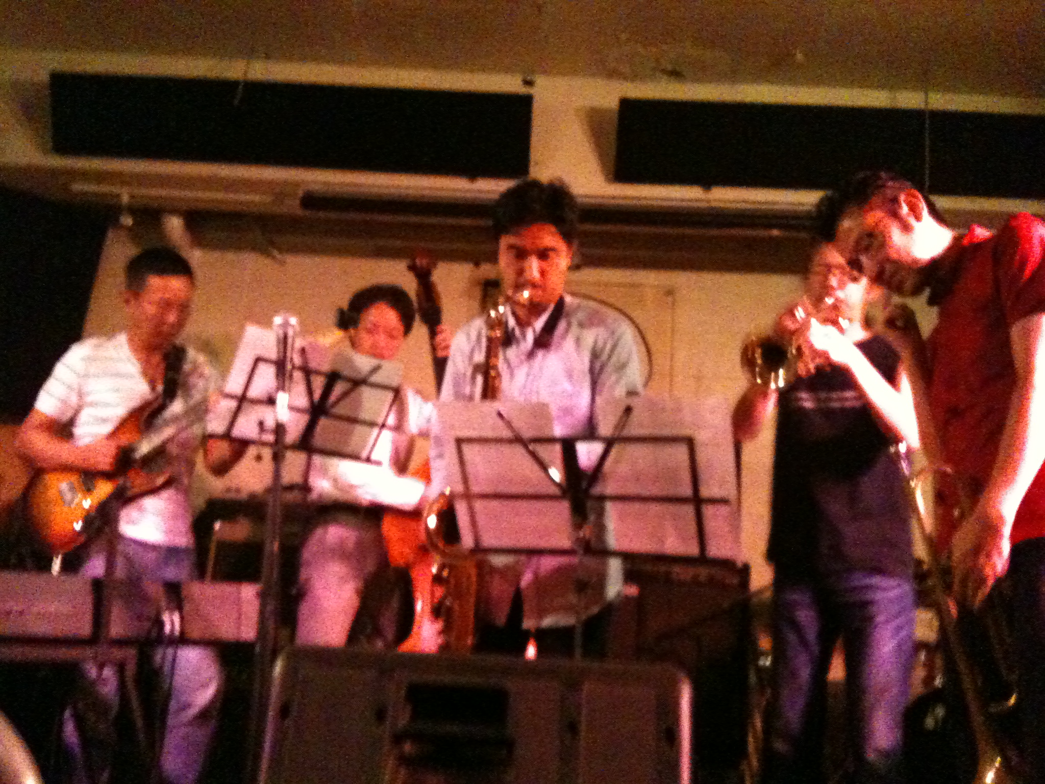 ユキコさん率いるロッカジャズバンドの演奏でした。久々にコシノさんに会ってベース談義ができたり、大月さんのファンキーなドラムもあったり、そしてセクシーなユキコさんの歌とパフォーマンスもあったりと、楽しいライブになりました。